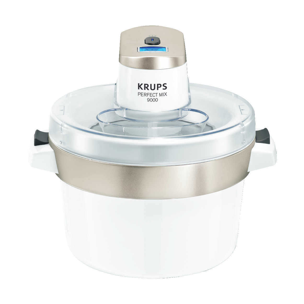 Mit der Eismaschine PERFECT MIX 9000 von KRUPS bereiten Sie Speiseeis und viele weitere gekühlte Desserts im Handumdrehen zu: genießen Sie köstliche Eiscremes in den Sorten Ihrer Wahl, selbstgemachte erfrischende Sorbets und Frozen Yoghurt. Das benutzerfreundliche Design überzeugt mit einem transparenten Deckel mit praktischer Öffnung zum einfachen Einfüllen der Zutaten. Dank eines Digitalbildschirms sowie eines Signaltons wissen Sie stets, wie weit die Zubereitung fortgeschritten ist. Im großen und praktischen Behälter mit Platz für bis zu 1 l Speiseeis wird die Zubereitung von großen Mengen Eiscreme mit dieser Eismaschine zum Kinderspiel. Die abnehmbaren Teile, wie der spülmaschinenfeste Deckel und der Eisschaber aus Silikon, sind ganz einfach zu reinigen.