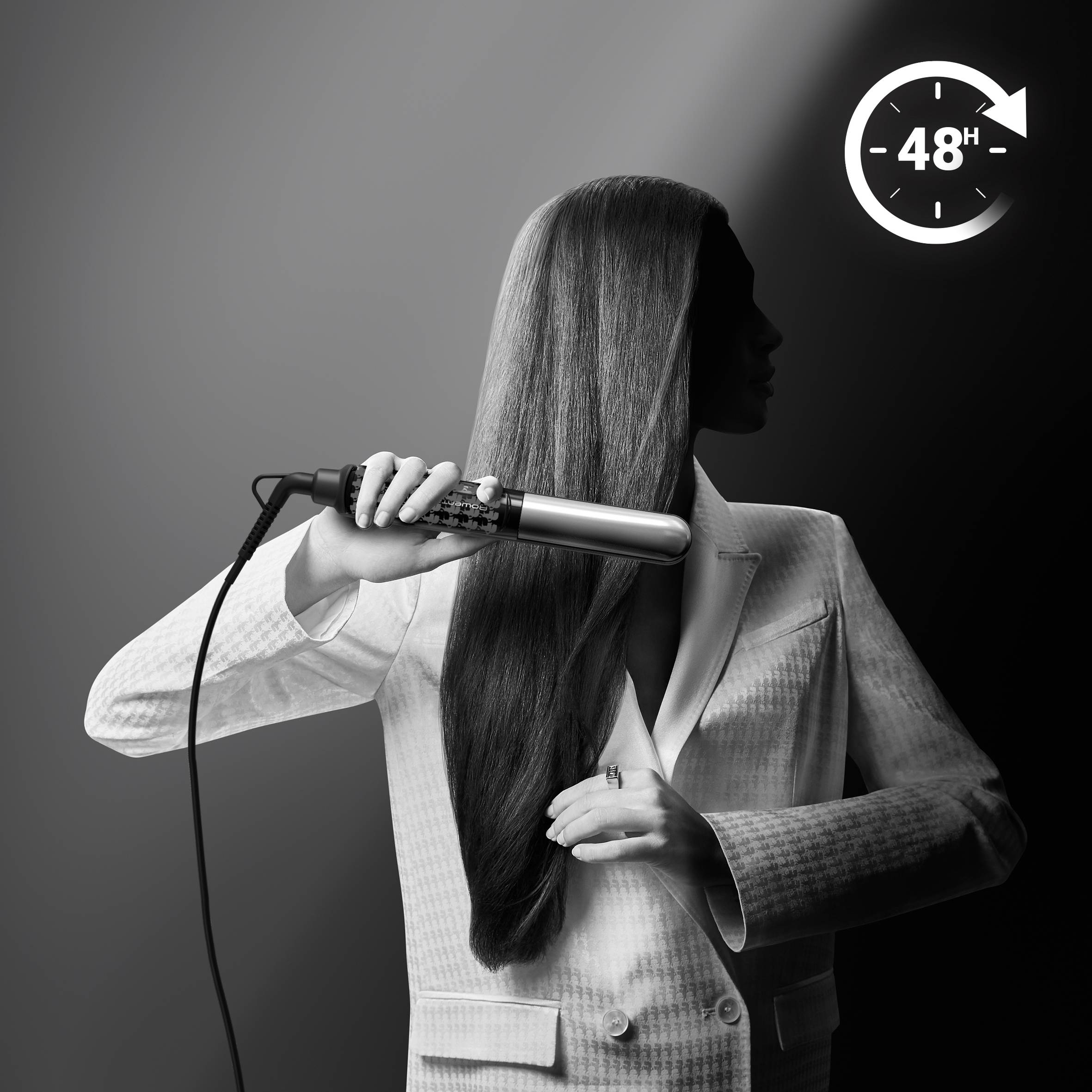 Entdecken Sie den Rowenta X Karl Lagerfeld Thermostyle, einen 2-in-1-Haarglätter für wunderschöne schwungvolle Locken und sanftes Glätten. Dank der optimalen Wärmeverteilung enstehen 40 % federndere Locken. Verleihen Sie Ihrem Look Tag für Tag einen Hauch mehr Glamour und Glanz mit dem Ionen-System und einer Keramikbeschichtung für strahlenden Glanz